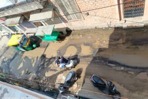 सत्यनारायण मार्ग पर जल निकासी की कोई व्यवस्था नहीं है। नालियों का गंदा पानी सड़क पर फैलकर कीचड़ बन गया है। चारों ओर दुर्गंध फैली हुई है, लेकिन सफाई विभाग, निगम और प्रशासन — तीनों की चुप्पी जनता को झकझोर रही है।
