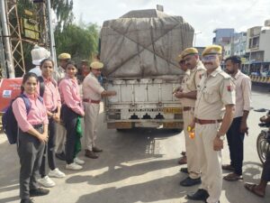 कार्यक्रम के दौरान सैकड़ों वाहन चालकों को पंपलेट वितरित कर सड़क सुरक्षा नियमों की जानकारी दी गई, साथ ही वाहनों पर रेडियम स्टीकर लगाए गए ताकि रात के समय दुर्घटनाओं की संभावना कम हो।
