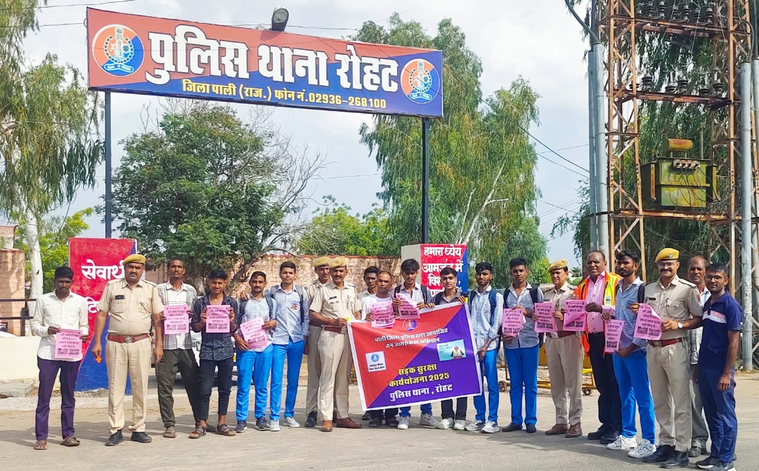 रोहट, 06 अक्टूबर। शासन की सर्वोच्च प्राथमिकता “सड़क सुरक्षा – जीवन रक्षा” जन जागरूकता अभियान के तहत सोमवार को पुलिस थाना रोहट में सड़क सुरक्षा जागरूकता कार्यक्रम का आयोजन किया गया।
