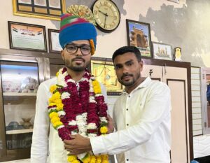 उनकी इस ऐतिहासिक उपलब्धि पर समाजजनों ने गर्मजोशी से स्वागत करते हुए साफा एवं माला पहनाकर सम्मानित किया।
